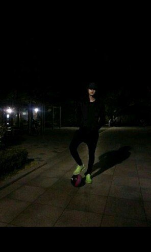아무래도 축구공이겠지? 농구공이면 옆구리에 끼고있지않았을까