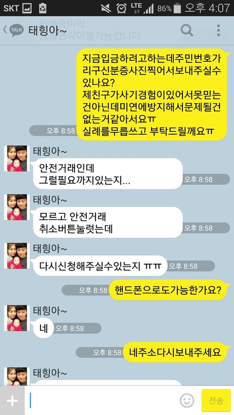 안전거래의 경우 전화번호를 요구하자 연락 두절