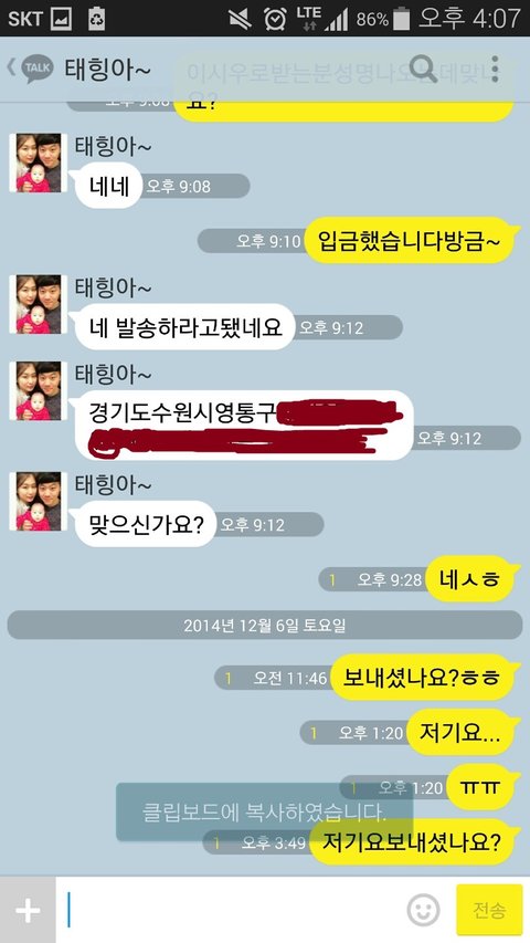 입금 후 .... 주소까지 확인한 그 사람은 그 이후 연락이 두절되었습니다.