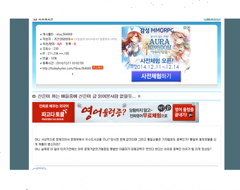오유는 진짜 개씹노답이다. 저런데 들어가서 선동당하는 새끼들 진짜 멀리해라.