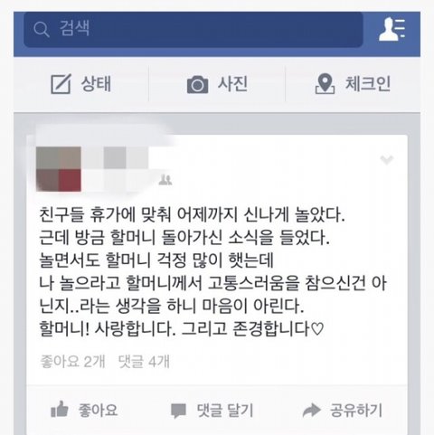 친구들이랑 놀러감. 근데 할머니가 아프심 그래서 걱정함. 놀다왔는데 할머니가 돌아가심. 걱정하지말고 재밌게 놀다오라고 돌아올때까지 버텨주신 것 같음. 손녀를 지극히 사랑하시는 할머니. 손녀 걱정시키기 싫어함. 그래서 더 마음이 아림. 할머니 사랑해요 존경해요. 난 이렇게 이해했는데 전혀 이상하게 안보이는데.. 뭐가 문제라는건지 설명좀
