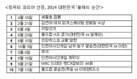 트위터에서 선정한 2014년 대한민국 올해의 순간들...
