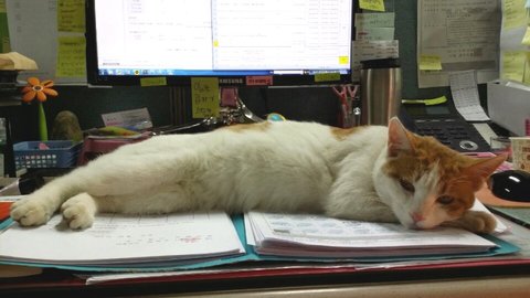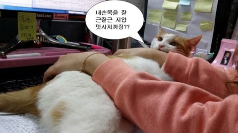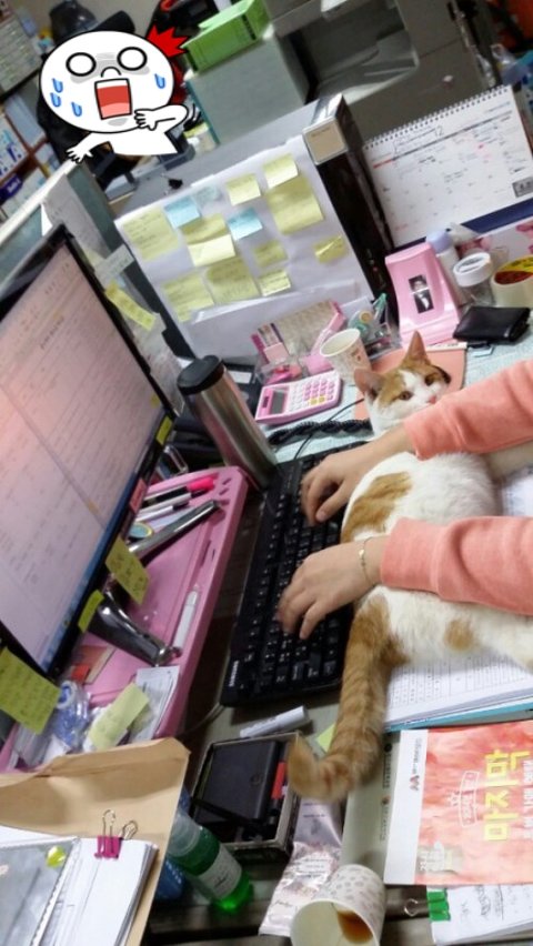 어느날 회사에 갑자기 찾아온 냐옹이에요~ 일하고잇는데 방해하기~