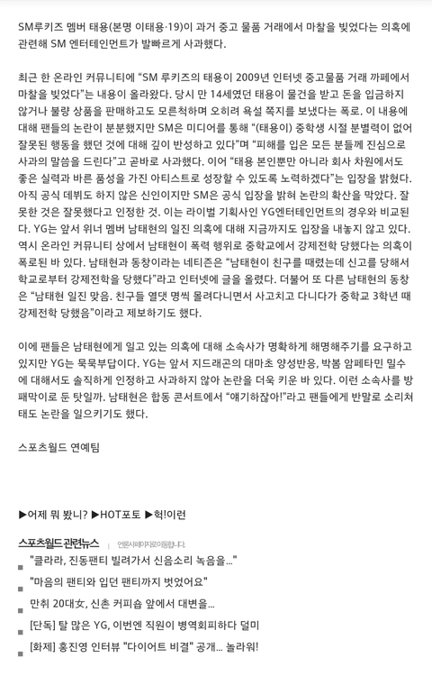 ㄴㄴ 아예 일진설 루머인거 다 나왔는데 저 기자가 원래 yg까고 sm한테 선한 기자임 말그대로 기레기