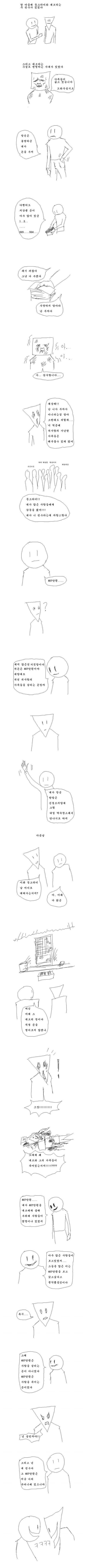 산골소녀 영자 얘기 떠오르네요 물론 영자나 영자 아버지 (네모) 는 만화처럼 돈을 구걸하진 않았지만.. 기자들 및 대형 회사들은 (만화에서 동그라미 인간)매스컴에 실고, CF를 찍게 해서 네모에게 돈을 주었죠. 네모 (영자와 그녀 아버지)의 소식을 접해들은 사람들은 영자네 아버지가 살고있는 집에 찾아가 아버지를 죽였고, 영자의 장학후원회장은 영자의 돈을 모두 가로채고 심지어 영자를 폭행했습니다. 궁극적으로 산속에서 아버지와 행복하게 살던 영자를 세상으로 내보내고 불행으로 이끈 기자들, 미디아, 대형기업(세모)만 주머니에 그 돈을 챙겼습니다. 이 사건에 대해 모르시는 분들은 아래 사이트를 참조하세요. https://mirror.enha.kr/wiki/%EC%82%B0%EA%B3%A8%EC%86%8C%EB%85%80%20%EC%98%81%EC%9E%90%20%EC%82%AC%EA%B1%B4