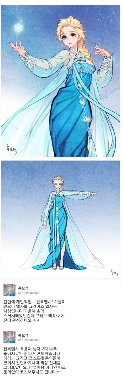 난 이거... 흑요석님이 겨울왕국 엘사에 한복입히신거...