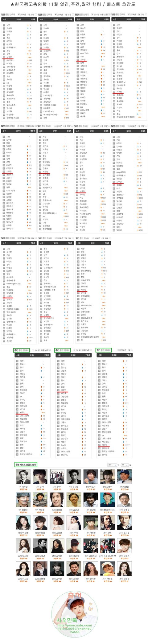 광고랭킹 정리하는 와중에, 11일날 실검에 깜짝등장한 민서깅8ㅅ8