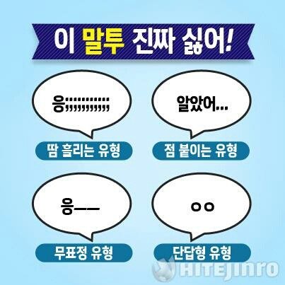 땀이 제일 싫어 불만있어보임 나보고어쩌라고;;이런 느낌? 차라리 단답이 괜찮음 카톡을 잘안해서 그런지 몰라도ㅋㅋ