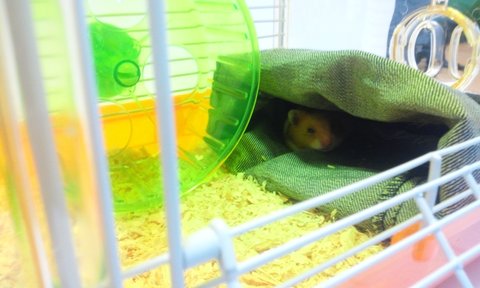 데려올때에는 대게 작았는데 지금은 좀 컸답니다. 원래 골든햄스터가 순하고 좀 큰 종이라고 하네요.