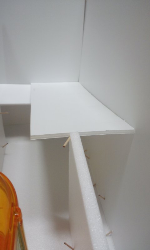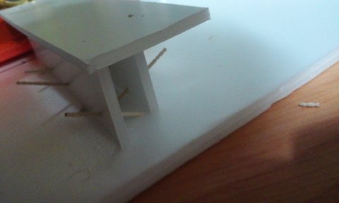 4. ㄷ자 모양으로 만들고, 위에는 평지로 만들었어요. 저기도 기둥을 해야 하는데, 기둥만들기 귀찮아서 두꺼운 우드락으로 그냥 기둥처럼 만들었죠.