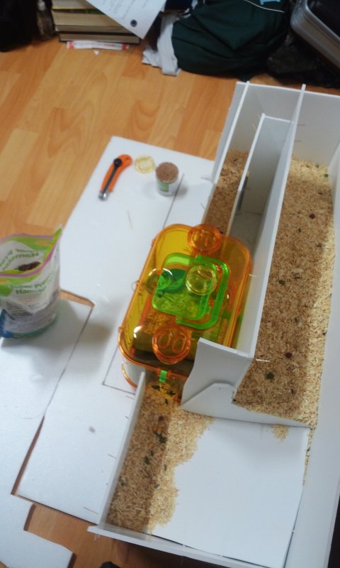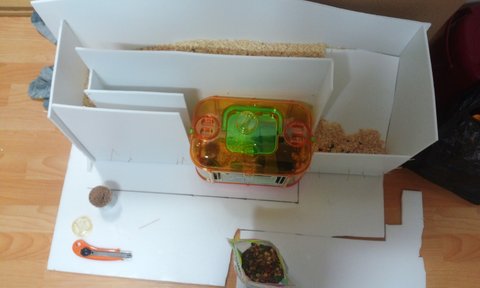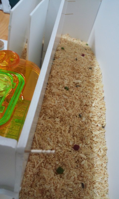 그리고 골든햄스터가 10~15 cm 까지 큰다고 해서 탈출하지 말라고 양 옆에 벽을 만들었어요.
