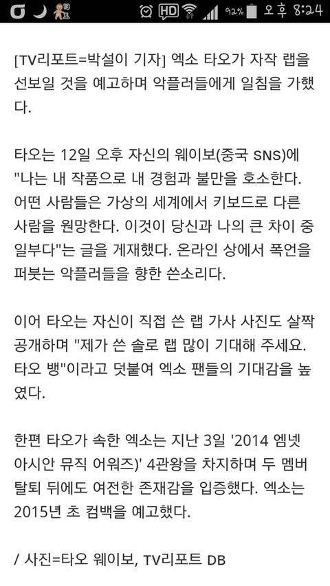 악플러한테 일침햇엌ㅋㅋ 들어보고싶디ㅠ 멋지다이!!