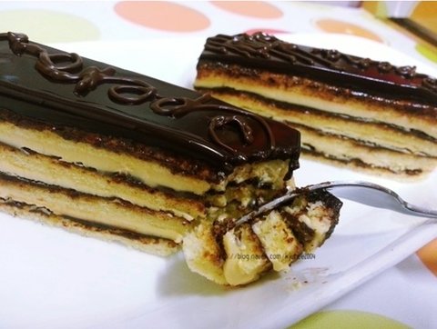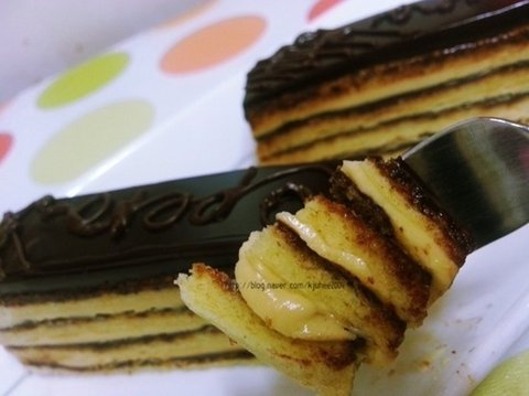비스퀴 조 콩드-카라멜 버터크림-초코가나슈를 겹겹이 쌓아올려서 만든거에요