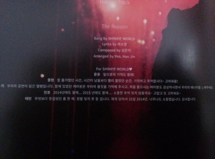 팬들이 리앵콜 이벤트로 수록곡 The reason 이라는 곡을 떼창했음. 근데 그걸 녹음해서 멤버들 땡스투와 함께 앨범안에 포함시킨거임.