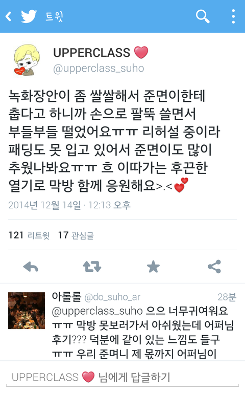 준면이 가뜩이나 추위잘타는데ㅠㅠㅠㅠ