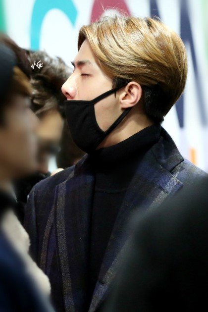 마스크뒤로 하품하는 세훈이