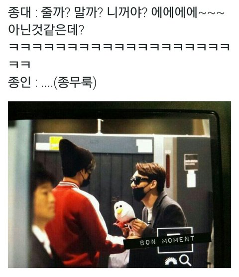 이건 영상인데 꼭 봐!! 종인이가 툭툭 내치는데 둘 다 귀여워죽겠어- ♡