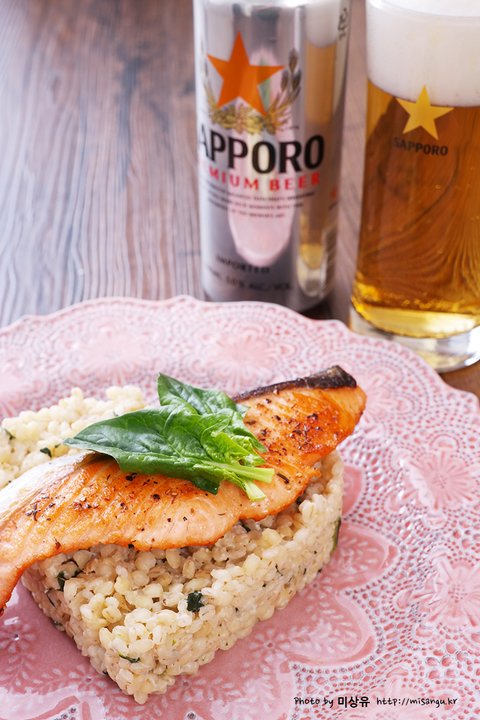 메뉴는 시금치 보리 리조또와 연어스테이크~생각보다 간단한데고급 레스토랑 온거같이 있어보이는 음식들 ㅎㅎ맥주안주로도 잘 어울린답니당