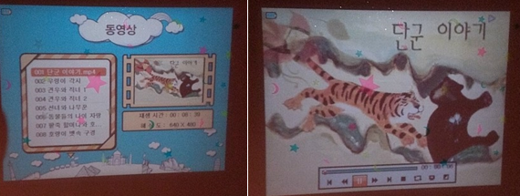 스토리빔은 그림책 100권이 내장되어 있는 빔 프로젝터로 누운 채