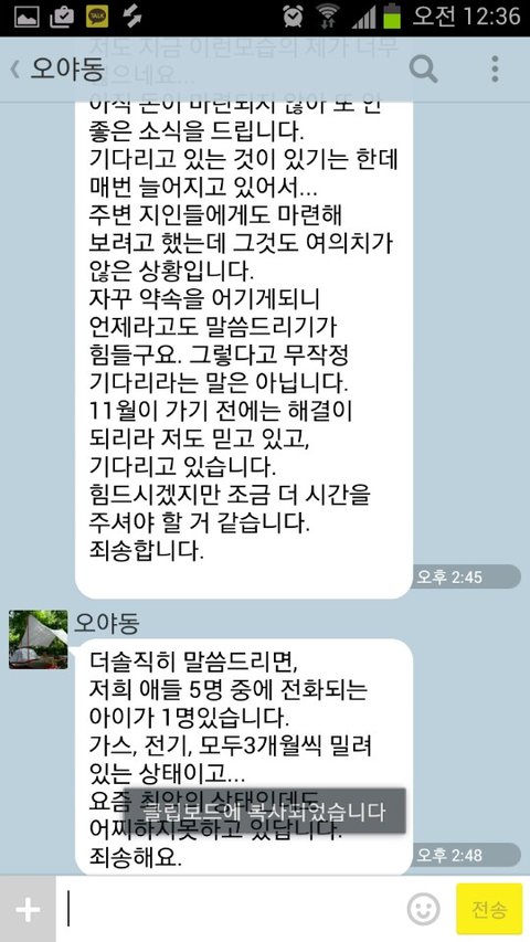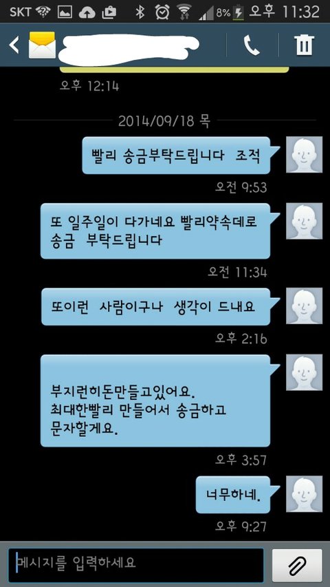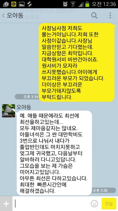 공사가 끝났음 에도 불구하고 돈을 주지 않았습니다 그래서 저희 아버지는 5월달 동안 계속 그 일터를 찾아가 돈을 받기 위해 나가셨습니다 물론 돈을 안줘서 간 적도 있지만 돈을 주겠다는 약속을 하고 오라해놓고 돈을 주지 않는 경우가 허다하였습니다. 그렇게 그 분이 돈을 주지 않으며 시간을 끄는 동안 저희 아버지는 1년간 어렵게 그 많은 유혹을 이겨내며 끊었던 술을 다시 드시게 되셨습니다 그러다 5월 13일에는 아버지가 공사현장에서 죽겠다는 말을 하시며 매우 큰 상처를 입으신적이 있으셨습니다 그때 저희 아버지는 병원에가 치료를 받으셨고 그 다음날 14일 일과 관련된 다른분이 돈의 일부를 보냐주셨고 그 돈은 아버지가 데려가신 일꾼들께 인건비로 모두 주었습니다 아버지는 지금 우리형편이 어렵지만 아버지가 데려가 같이 일을 해주신 다른 분들을 먼저 챙기셨습니다