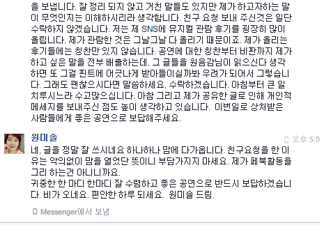 제가 답장에 썼듯이, 이미 첫 글로 인해 엎질러진 물이였고, 많은 뮤지컬 팬들은 상처를 받았습니다.