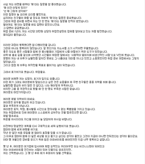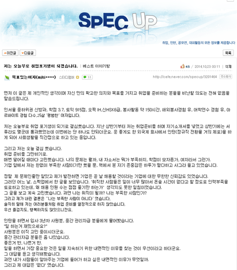 [펌글] 스펙업 베스트 이야기글 - 저는 오늘부로 취업포기생이 되겠습니다.