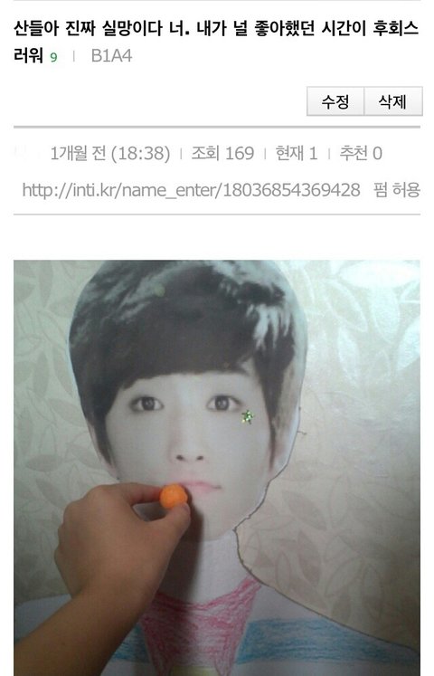 산들아 진짜 실망이다 너.내가 널 좋아했던 시간이 후회스러워.