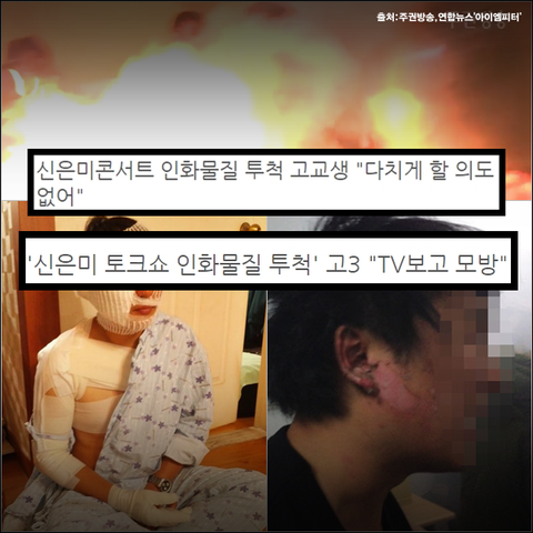 특히 오모군은 서울역 사제폭탄처럼 폭발물을 보관함 등에 넣어둔 것이 아니라 신은미라는 특정인을 향해 던지려고 하다가 제지를 받아 다른 사람을 다치게 했습니다. 만약 신은미씨의 토크콘서트 스텝이나 관계자가 막지 못했다면 아마 신은미씨가 크게 다칠 수 있었던 상황입니다.