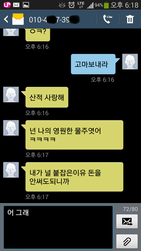 그리고 연락하지 말자고 말을 하여도 계속 장난전화를 하는겁니다
