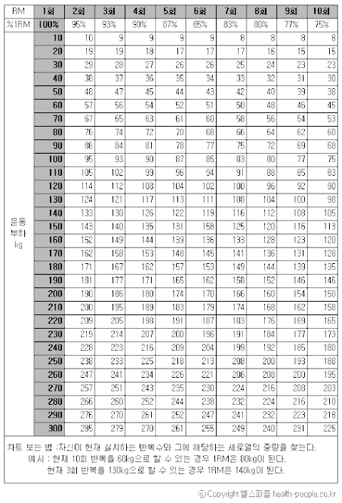 어디까지나 '참고용'이라는 것을 잊지마. 실제로 자신의 역량이 1RM을 잴 수 있는 역량이면 재면 그만이야.