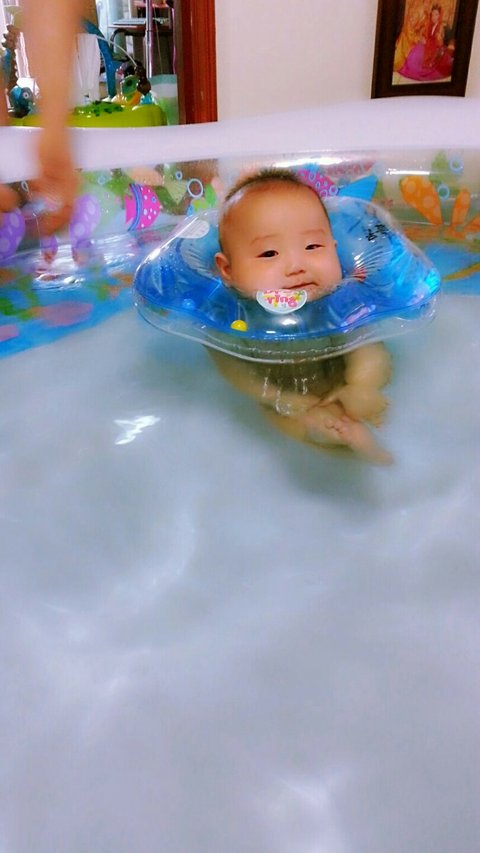 그리고 이맘때쯤 아가들 엄마 뱃속 양수에서 놀던기억이 있어서... 수영을 시키면 좋아한다는 얘길 또 어디서 주워 듣고는....