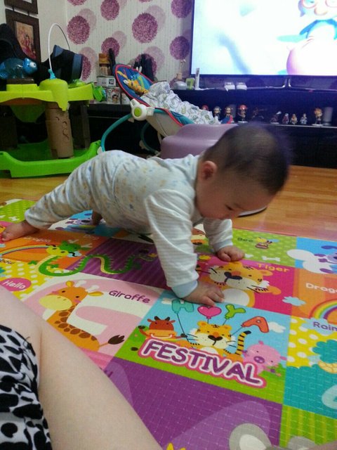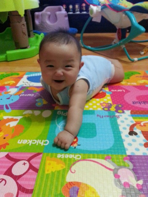 두둥.... 이날은 처음으로 배밀이를 하던날임 ㅎㅎ