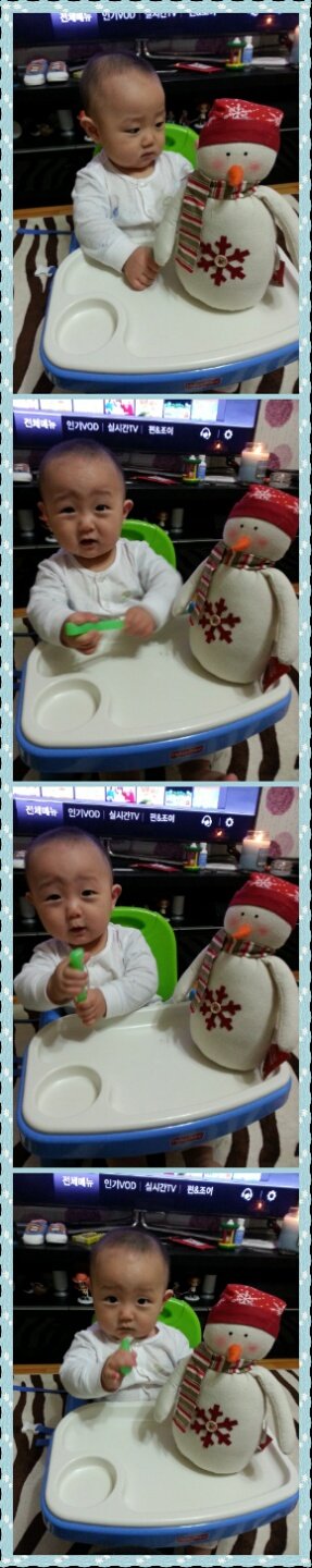 처음에는 얘 뭔가.. 하는 표정으로 보더니.. 눈사람에 대고 폭풍 옹알이 ㅋㅋㅋㅋ