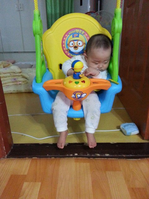 요즘 뽀로로 사랑에 빠진 아드님은... 선물로 받은 뽀로로 그네에 첨 탑승하고 완전 신나심...