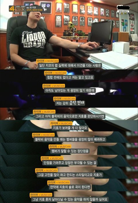 맞다. 블락비를 힙합으로 한정짓고 싶진 않다. 내가 개인적으로 크루 형들과 하는 게 힙합인 거지, 블락비 안에선 힙합뿐 아니라 일렉트로닉, 하우스, 재즈 등 정말 여러 가지 음악을 하고 싶다.
