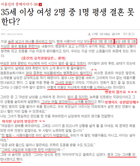35세 이상 여성 2명 중 1명 평생 결혼 못한다.news ㅎㅎ
