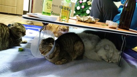 뭐하나얻어먹을까해서 항상 상밑에기웃거리는애들~~ㅋㅋ