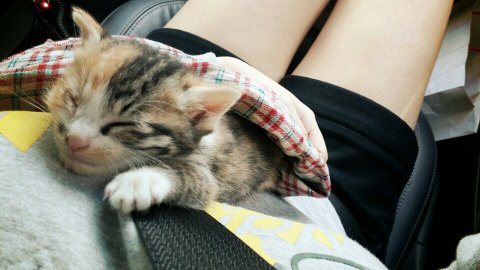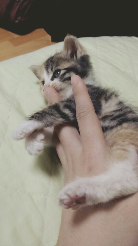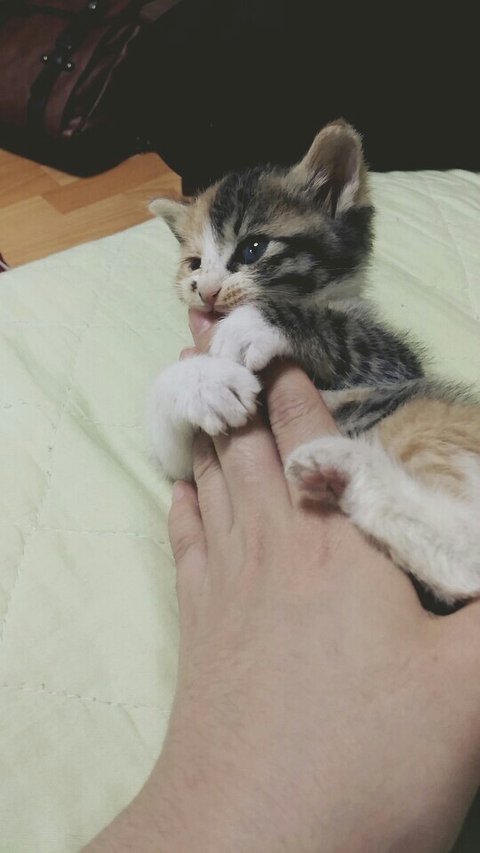 남자친구 말에 따르면 차를 주차하고 내렸는데 갑자기 새끼고양이 한마리가 사뿐사뿐 오빠 다리밑으로 걸어오더니 신발사이에 앉았다고 함.