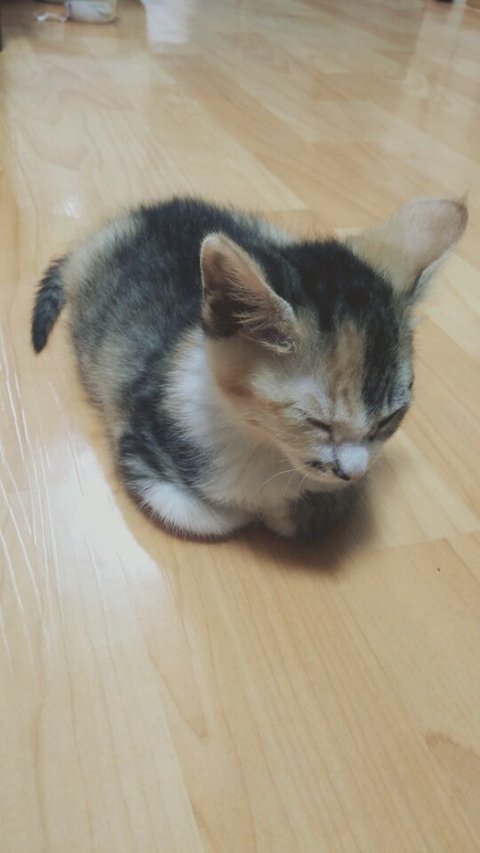 처음 봤을땐 진짜 너무 작고 한쪽눈도 염증인듯 빨갛게 부어있었음ㅠㅠ