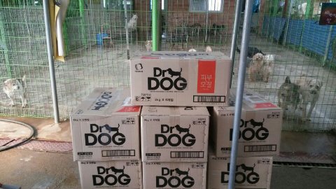 유기견보호소에 누가 통크게 사료를 기부했다고 사진을 보내왔는데