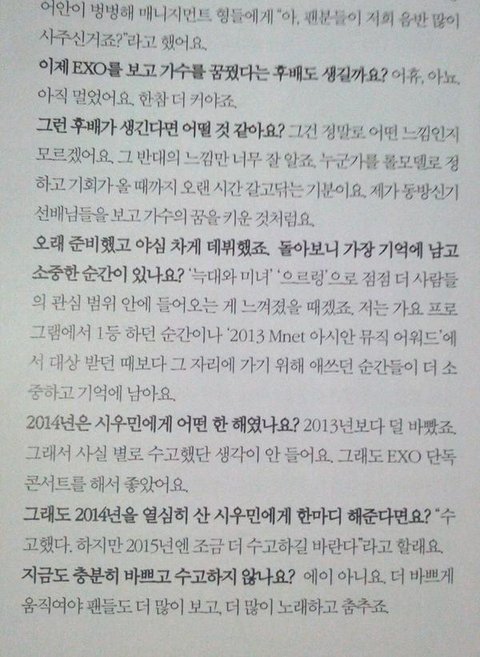 힘들지만 팬들을 더 많이 보구 싶어하구 노래하고 춤추고 싶다는 말이 왜이렇게 찡하지..ㅠ 2015년에는 민석이가 만족할말큼 정말 바쁜 한해가 됐음 좋겠따ㅠ