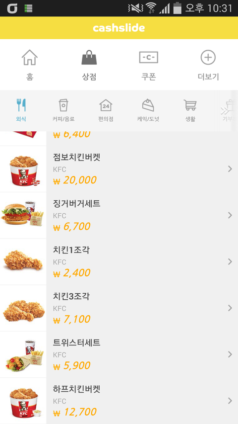 캐시슬라이드 모은걸로 징거세트 먹으려고해