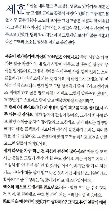2014년에는 주변사람들을 더 챙기는 법을 배웠다는 세훈이