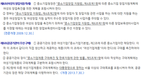 한줄요약 : 여자들이 사업하면 창업지원해주고 자금지원해주고 공공기관에서 우선구매해줌