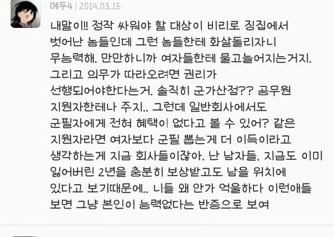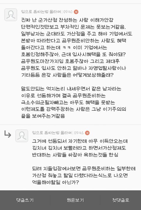븅신년들이 군가산점해봐야 공무원만 적용될거라느니 뭐니 보릉거리면서 물타기를 하는데