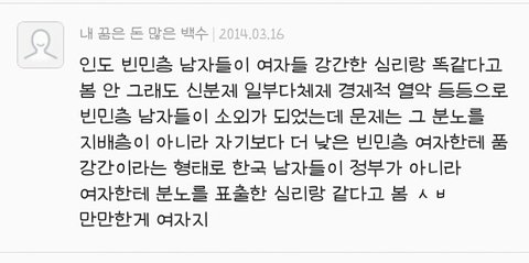 여자에대한 열폭과 꼴마초 똥대가리로 치부해버림 ^오^
