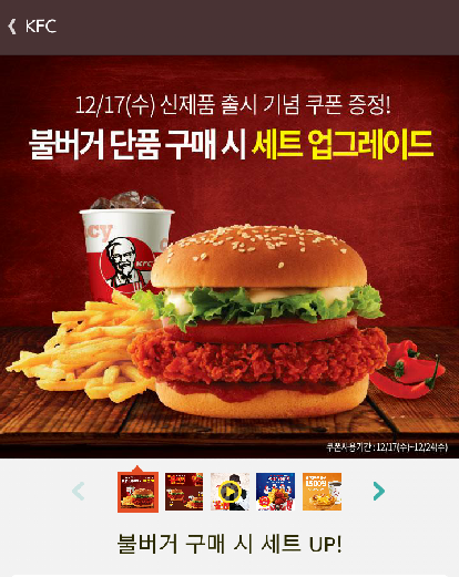 불치킨에 이어 불버거라니 >_< KFC 자랑 통살치킨이 패티로 들어가 있어요 근데!! 그 치킨이 불치킨으로 !!