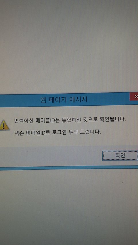 넥슨아이디로 로그인해서 하려니까 메이플아이디가 없어서 접속ㄴㄴ하대서 메이플아이디 만들고 메이플 아이디로 로그인하니까 저런 창 뜸