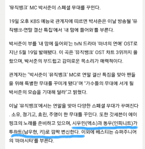 오늘 뮤뱅 꼭 보자 웅녀들!