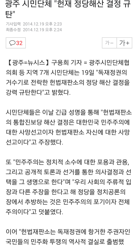 헌법재판소에서 통진당 해산을 선고한 뒤로 전국곳곳에서 시위할것임.